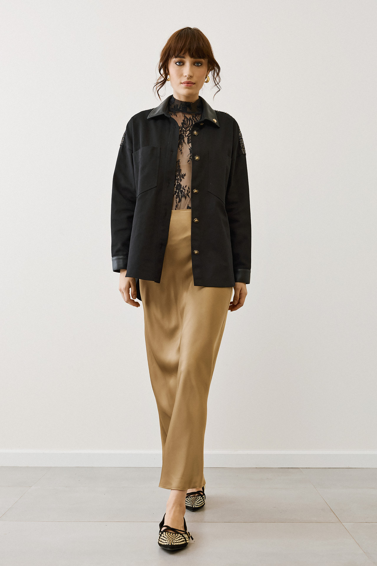 – Midi silky skirt