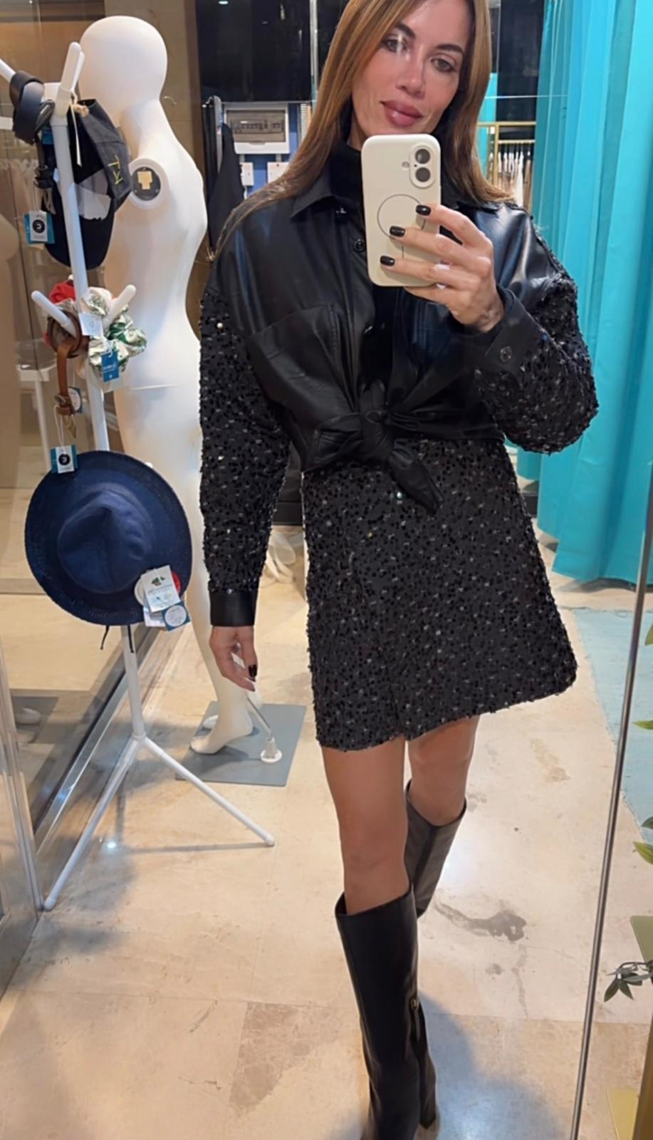 Tip: Pair with the matching ROXIE Eco-Leather & Sequin Overshirt.